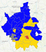 The map below demonstrates what a challenge it is for both the opposition and controlling groups to make decisions which work for everyone in the county. Life in Cambridge city centre is very different from life in Wisbech how you reconcile that with the types of decision you make is an ongoing challenge particularly considering the political differences by area.
